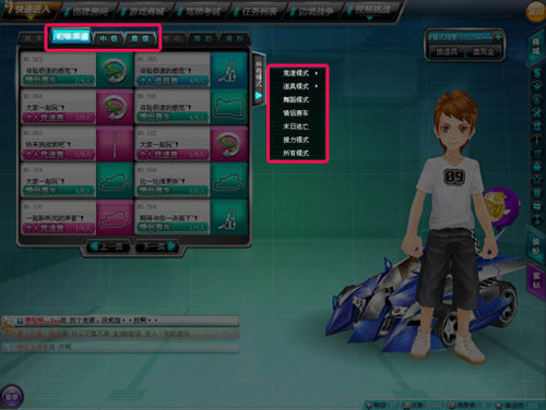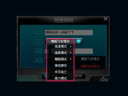 舞蹈模式分为飞车模式和传统模式两种