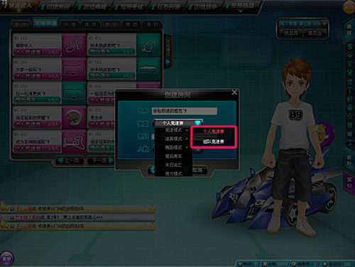 竞速模式分为个人竞速赛和组队竞速赛两种。