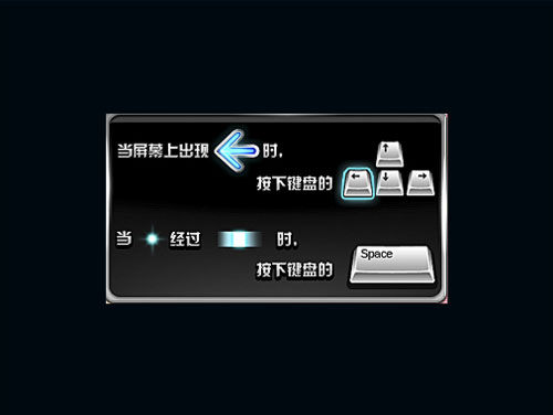 当界面出现时,表示即将需要您根据音乐节奏进行按键操作。节奏梭会从左到右划过,当节奏梭经过某个标注的节奏点时,您只需要按下相应的键即可。