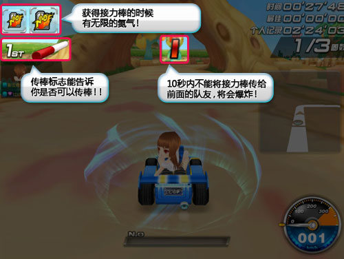 全新的接力模式劲爆登场!拉上你的亲朋好友,一起来接力吧!接力棒威力十足,能赋予你无限的动力;但是却又充满着不安定因素——连续持棒太久将面临着爆炸的危险。所以我们必和队友们一起合作,方能尽享接力棒的力量。在接力赛的比试中,率先把接力棒传到终点的队伍将获得胜利!