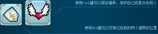 使用Ctrl键可以释放道具,保护自己或是攻击别人。使用Alt键可以变换已拾取的两个道具的位置。